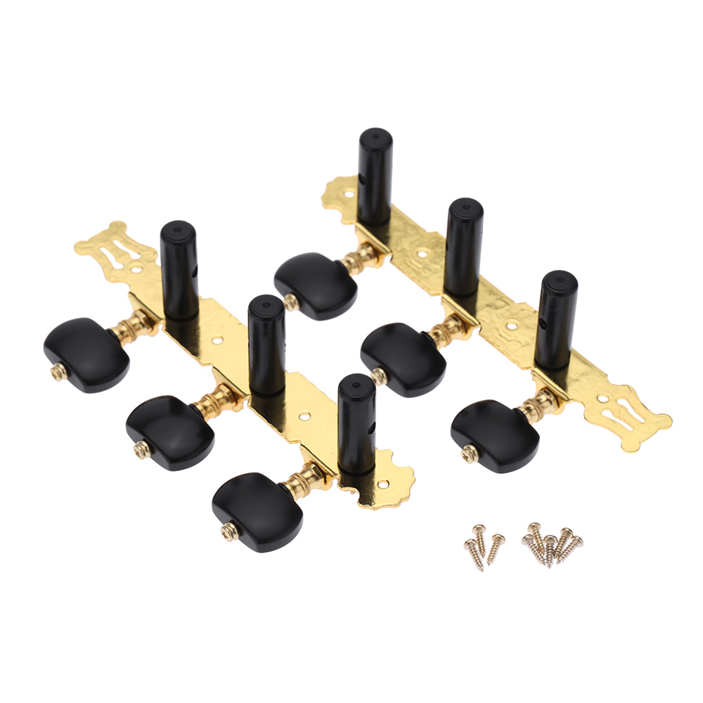 Комплект колковой механики для классической гитары, с черными пластиковыми втулками, черными ручками, позолоченный с чернением.