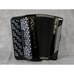 - Левая рука (басы): 120 клавиш готового аккомпанемента, от ноты "ми" контроктавы до ноты "ре-диез" большой октавы с одновременным звучанием в четырех октавах