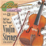 630-4/4 Комплект струн для скрипки. Cтруна МИ - сталь, шарик; струна ЛЯ - стальной керн, плоская оплетка, струна РЕ - стальной керн, плоская оплетка, струна СОЛЬ - стальной керн, плоская оплетка. La Bella США